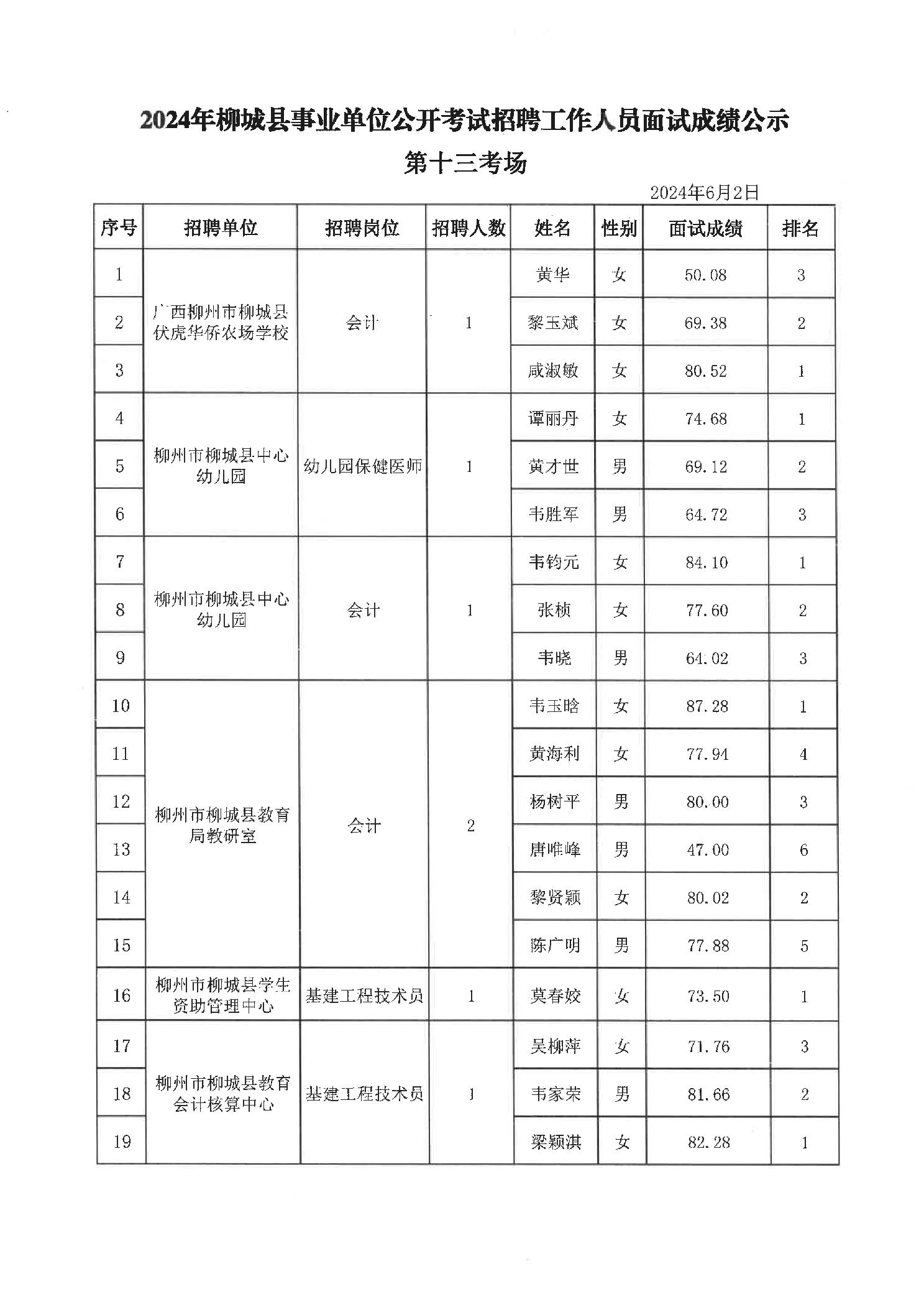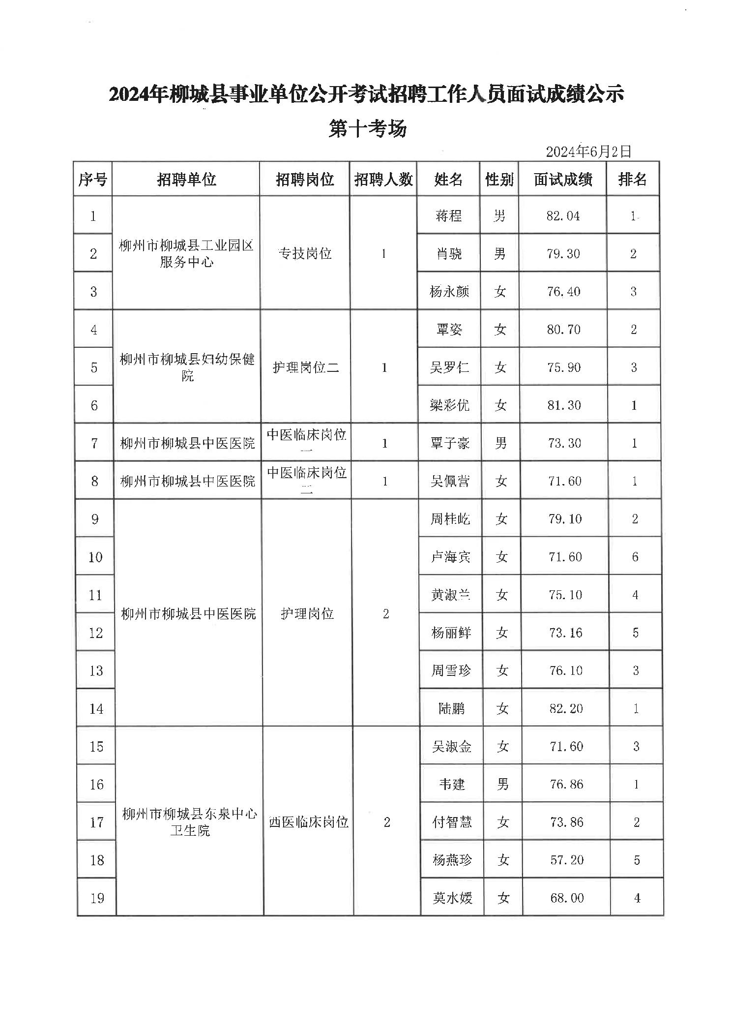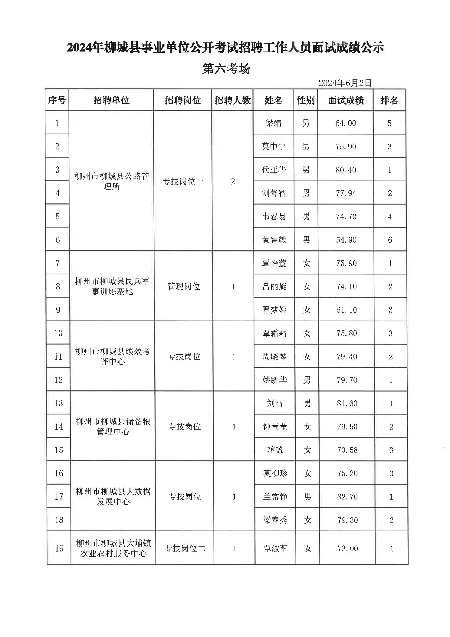 原文標(biāo)題:2024年柳州市事業(yè)單位公開考試招聘工作人員面試成績公示(柳城縣崗位)