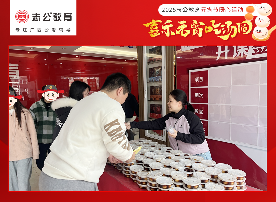 在緊張忙碌的公考備考之路上,每一位學(xué)員都在為了心中的夢(mèng)想全力以赴 。堆積如山的備考資料,一場(chǎng)接一場(chǎng)的模擬考試,長(zhǎng)時(shí)間的學(xué)習(xí)讓他們承受著巨大的壓力 。而這份在元宵節(jié)送上的湯圓,就像冬日里的暖陽(yáng),夏日里的清風(fēng),為他們帶來了片刻的慰藉 。