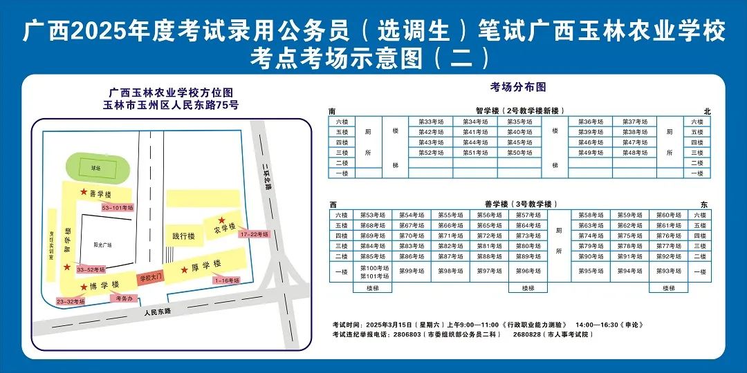 除考試當(dāng)天考生可以進(jìn)入考點(diǎn)外,考生不得提前進(jìn)入考點(diǎn)查看考場(學(xué)校將在大門處擺放考場分布示意圖),玉林考區(qū)11個考點(diǎn)的考場布置情況如下: