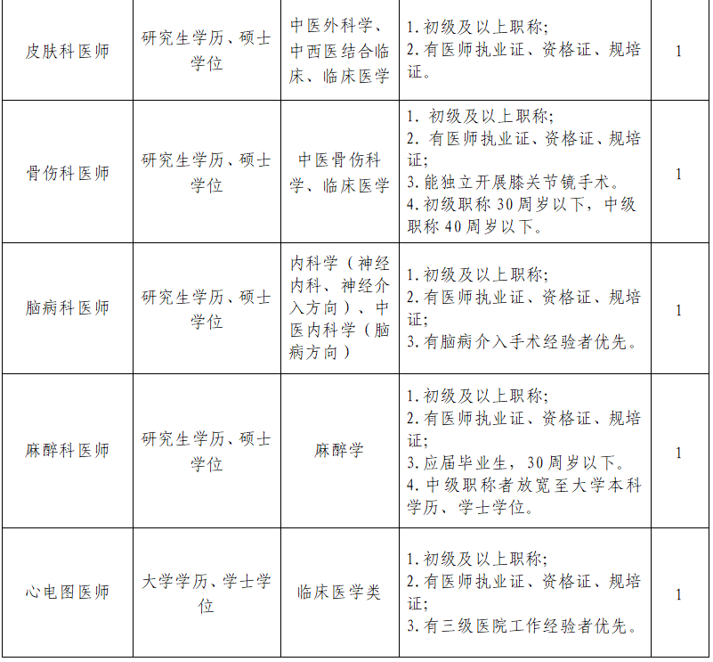 (四)醫(yī)師崗位原則上須取得住院醫(yī)師規(guī)范化培訓合格證。