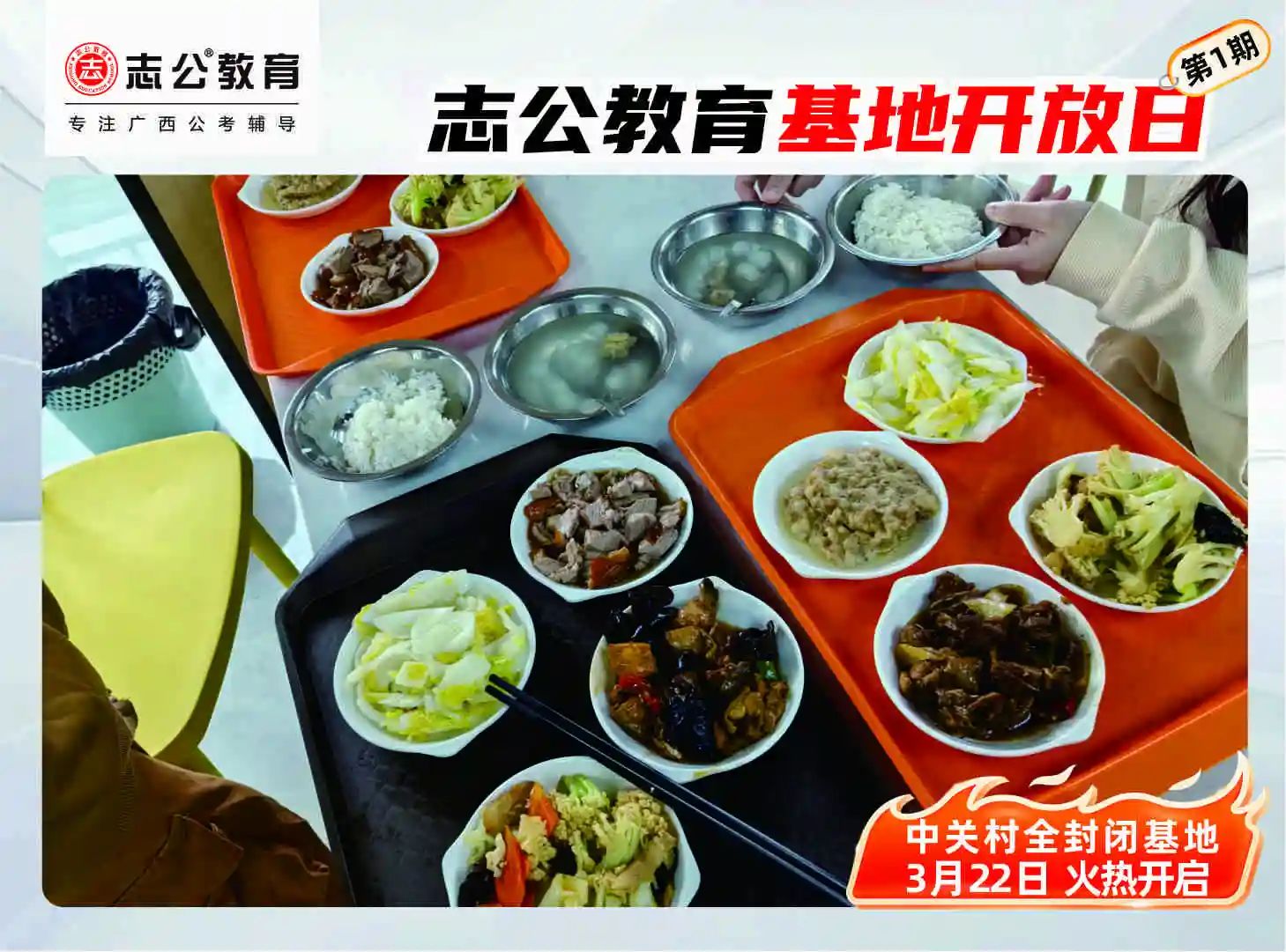 體驗(yàn)完模擬考后,志公的班主任帶領(lǐng)學(xué)員一同前往2樓食堂就餐。一同探索基地的食堂美食。