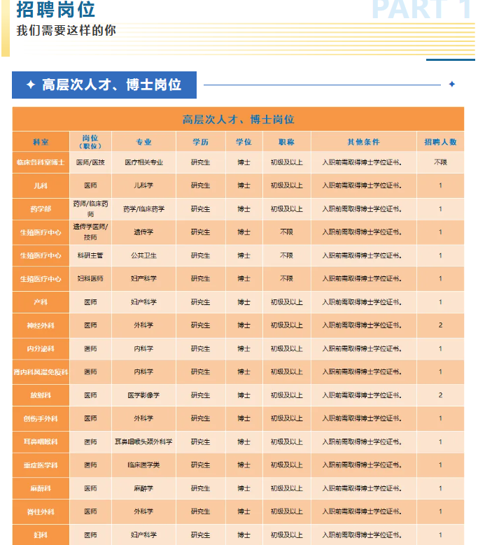 以上崗位均享受醫(yī)院科研獎勵、培訓(xùn)進(jìn)修、晉升職務(wù)職稱等權(quán)利,以及五險(xiǎn)一金、用餐補(bǔ)助、帶薪年休假、工會福利等待遇。