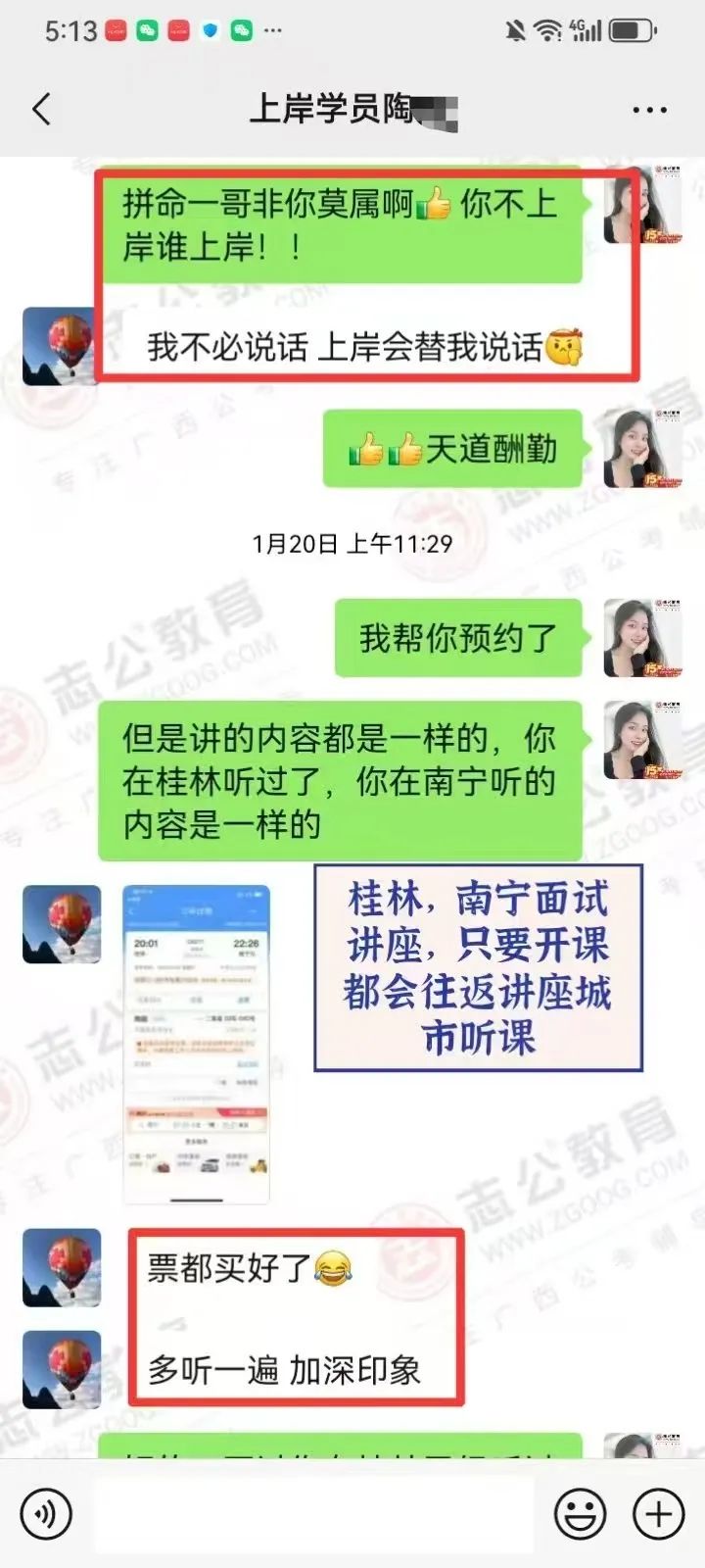 2023年,臨近研究生畢業(yè)時,一次偶然的機會,他得知同學的愛人也就是我,在我們志公教育任教。加我微信后跟我了解到我們志公有一個非常適合他的畢業(yè)成公課程,也了解到我們是一家優(yōu)秀的公考培訓機構(gòu)后,8月他毫不猶豫地報了我們的畢業(yè)成功班。從那以后,他一邊上學一邊培訓,常常學習到深夜。2024年國考,他進面了,聯(lián)系了我升級面試班,但未能成功上岸。不過他沒有絲毫氣餒,迅速調(diào)整心態(tài),繼續(xù)征戰(zhàn)農(nóng)信社和選調(diào)生。
