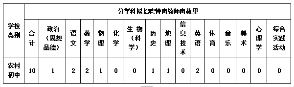 德??h2025年計(jì)劃招聘初中特崗教師10名,具體科目計(jì)劃招聘人數(shù)詳見下表: