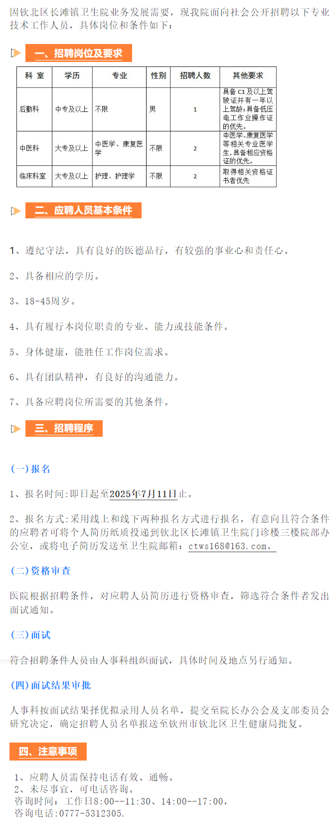 2025年欽北區(qū)長(zhǎng)灘鎮(zhèn)衛(wèi)生院關(guān)于招聘編外人員的公告