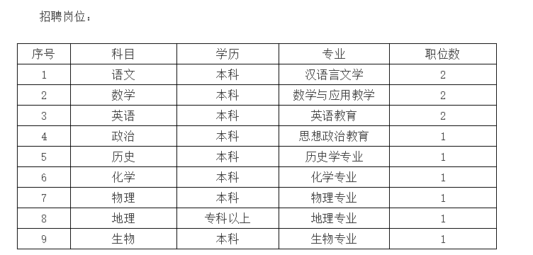 招聘條件:遵守國家法律、法規(guī),師德良好,服從管理,服從安排,教風(fēng)嚴(yán)謹(jǐn),為人正直,事業(yè)心和責(zé)任心強(qiáng),本科及以上學(xué)歷,普通話流暢、準(zhǔn)確,富有愛心,有志從事教育事業(yè),有一定的管理和人際協(xié)調(diào)能力,學(xué)業(yè)成績優(yōu)秀的應(yīng)、歷屆師范院?;蛲葘W(xué)歷的其他院校畢業(yè)生,有多年從教經(jīng)驗(yàn)的教師可適當(dāng)放寬年齡優(yōu)先聘用。