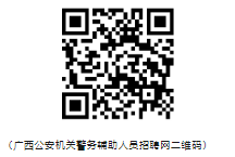 5.網(wǎng)上報名:應(yīng)聘人員登錄廣西公安機(jī)關(guān)警務(wù)輔助人員招聘網(wǎng)(https://fjgl.gat.gxzf.gov.cn:9099/)或掃描以下二維碼進(jìn)行網(wǎng)上報名。