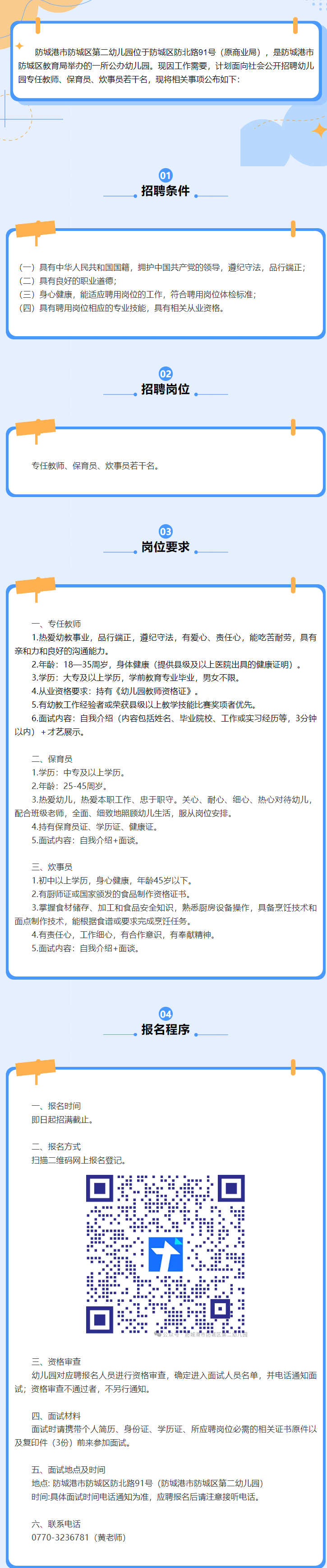 原文標題:防城區(qū)第二幼兒園2025年秋季學期教職工招聘公告
