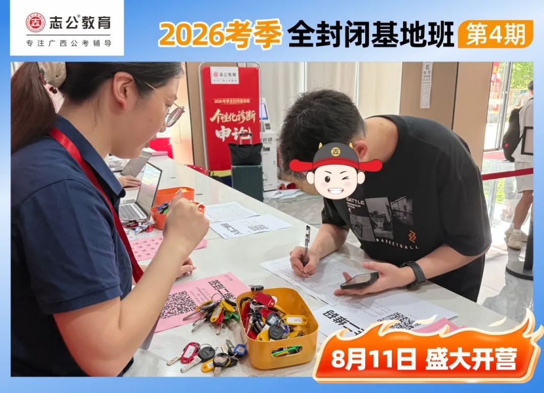 陽光明媚的一天,適合學(xué)習(xí),早上10點,志公教育(中關(guān)村)全封閉基地的簽到區(qū)已經(jīng)布置妥當,志公的班主任們早早到位,迎接每一位學(xué)員的到來。學(xué)員們滿懷期待,早早來到基地,為即將到來的學(xué)習(xí)之旅做好準備。簽到臺前,大家有序排隊,學(xué)員們依次領(lǐng)取到宿舍鑰匙、水卡等。班主任們細心核對信息,發(fā)放學(xué)員證和學(xué)習(xí)資料,確保每一位學(xué)員都能順利開啟接下來的學(xué)習(xí)生活。