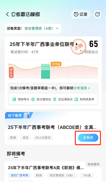 1??全zhen模擬高度還原:嚴(yán)格按照廣西事業(yè)單位聯(lián)考流程和時(shí)間進(jìn)行,試卷對(duì)標(biāo)zhen題,考場安排也高度還原,給你沉浸式考試體驗(yàn)。