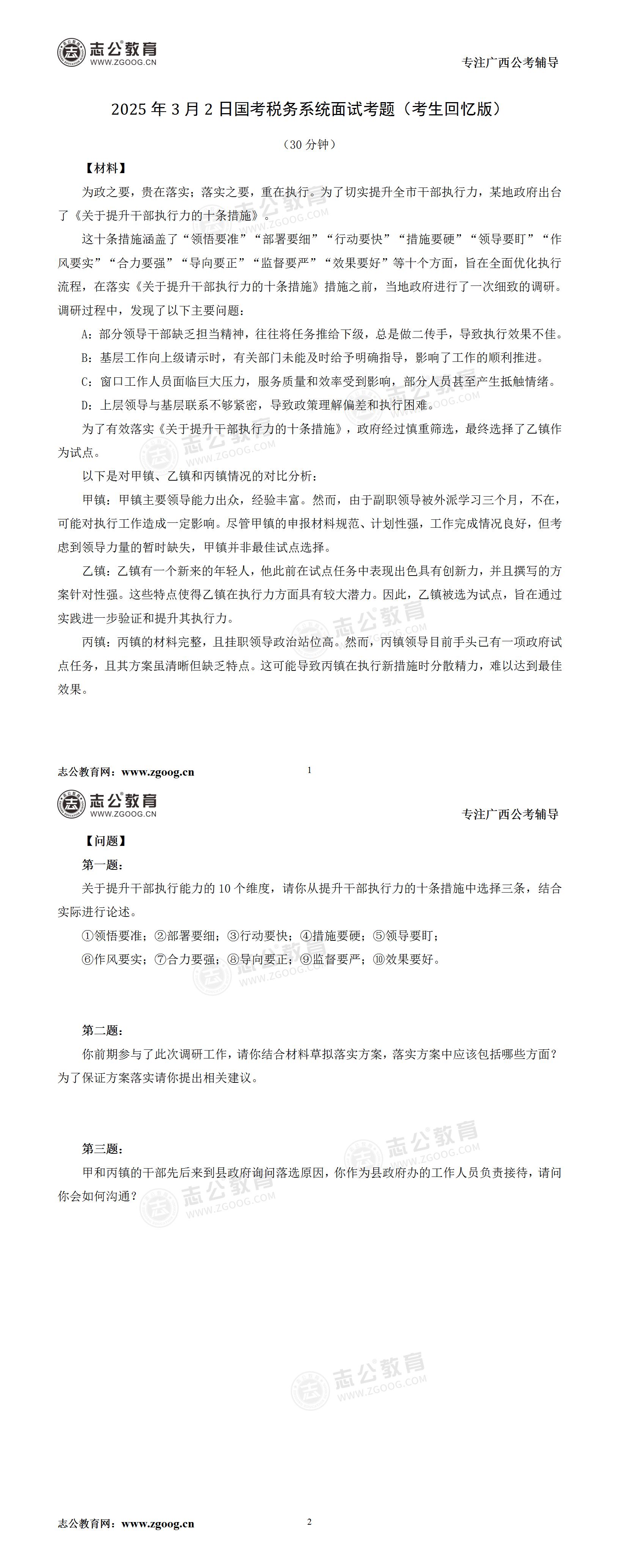 2025年國考稅務(wù)系統(tǒng)3月2日面試考題(考生回憶版)