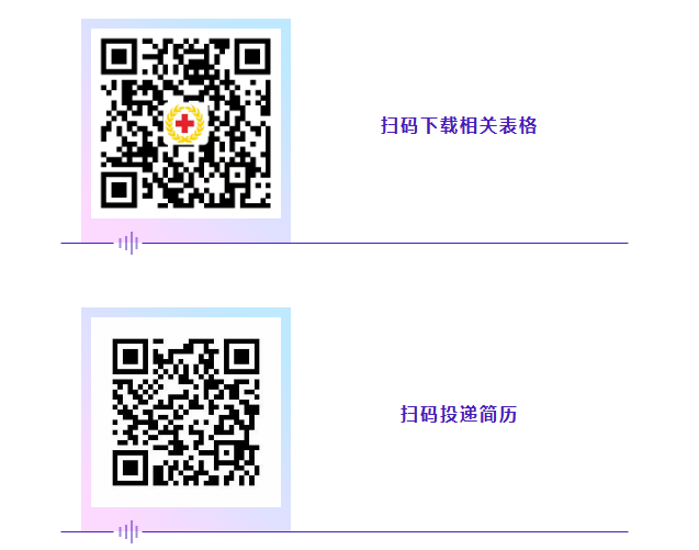 掃碼下載登記表等相關(guān)表格并填寫“個(gè)人應(yīng)聘信息表”,將“個(gè)人應(yīng)聘信息表”及個(gè)人簡歷以“姓名+專業(yè)+學(xué)校”的命名,發(fā)送至郵箱:hhyyrsk3858904@163.com;掃描二維碼,填報(bào)個(gè)人信息,上傳個(gè)人簡歷。