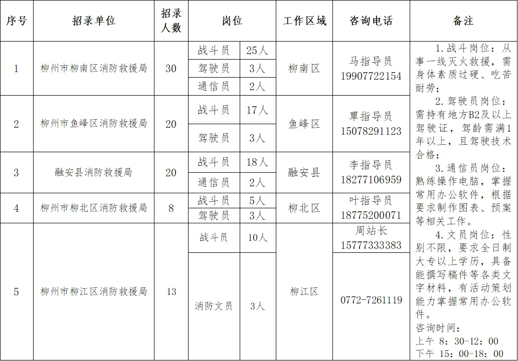 為進(jìn)一步加強(qiáng)柳州市消防救援隊伍力量建設(shè),提升綜合應(yīng)急救援能力,柳州市消防救援局按照“公平公正、平等自愿、競爭擇優(yōu)”的原則,面向社會公開招錄政府專職消防員,現(xiàn)將有關(guān)事項公告如下: